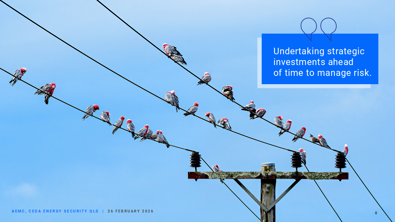 Undertaking strategic investments ahead of time to ensure the grid is ready for what's coming is better than trying to invest "just in time", as every delay increases risk to reliability and system security.