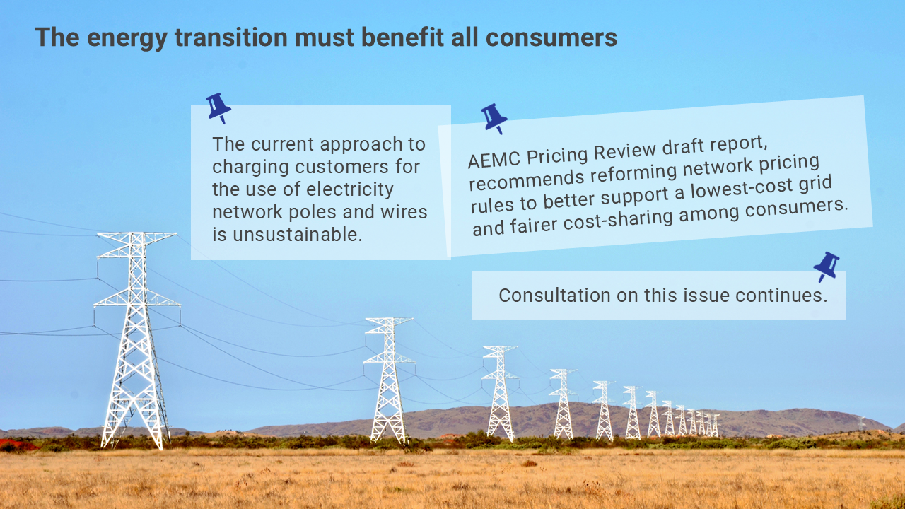 The AEMC Pricing Review draft report, released in December, recommends reforming network pricing rules to better support a lowest-cost grid and fairer cost-sharing among consumers.