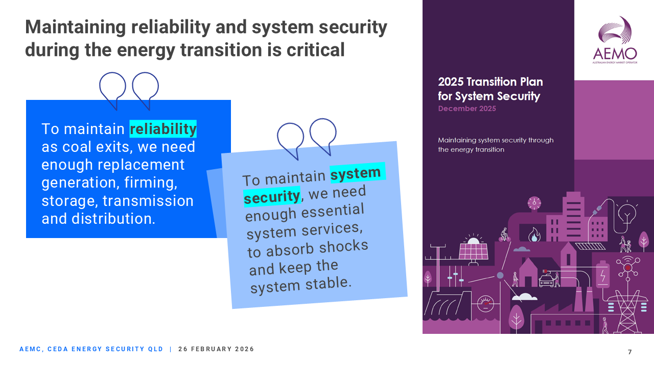 AEMO's Transition Plan for System Security, released in December, identifies emerging security gaps that require coordinated action by AEMO, governments, networks, and market participants to support the energy transition over the next 10 years.