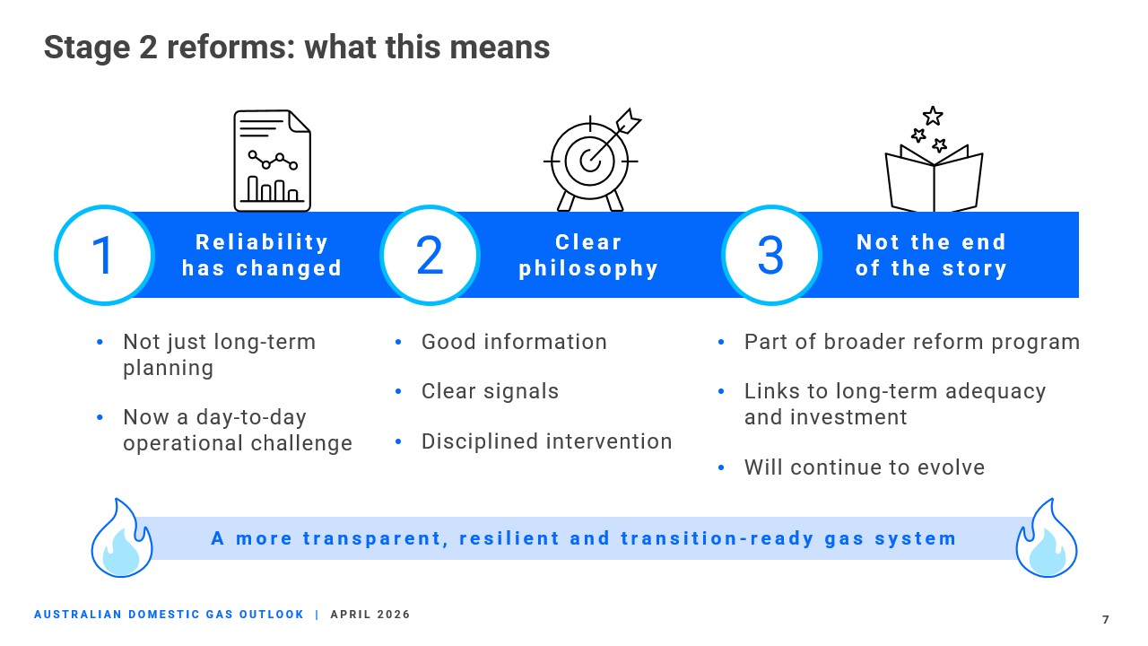 Stage 2 sits alongside broader reforms – including work on longer‑term supply adequacy and investment – and will continue to evolve as conditions change:
