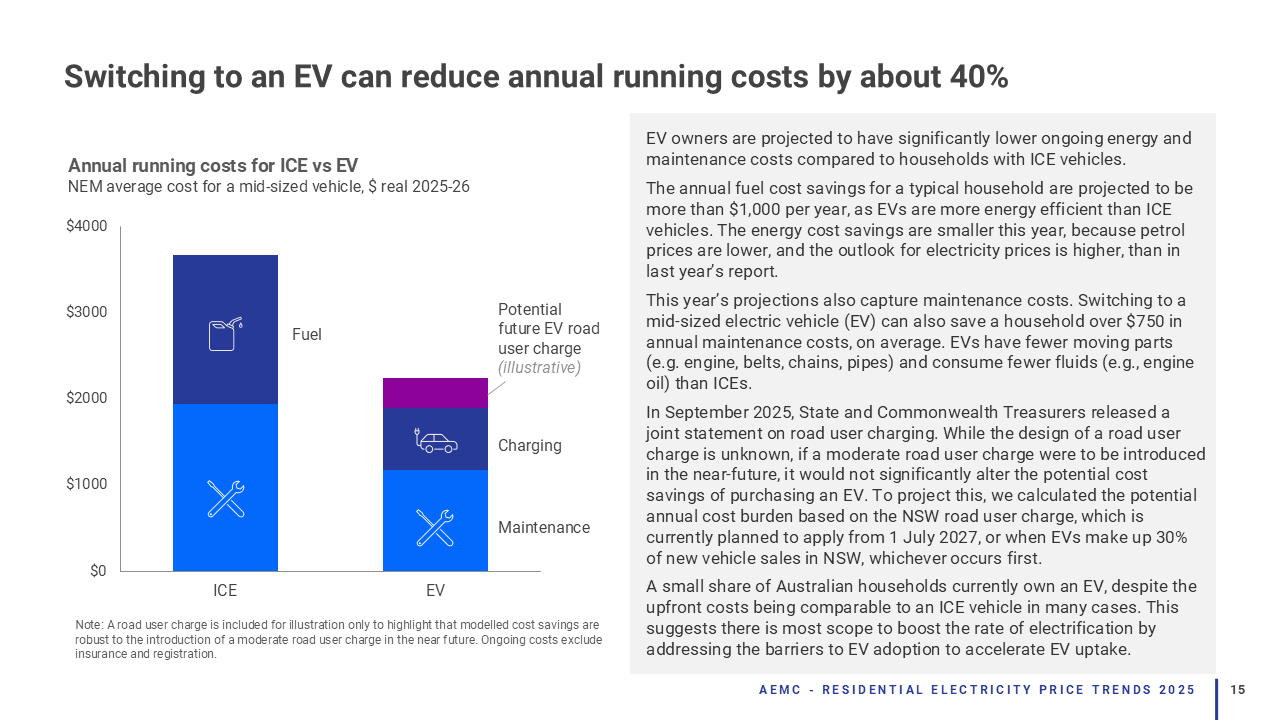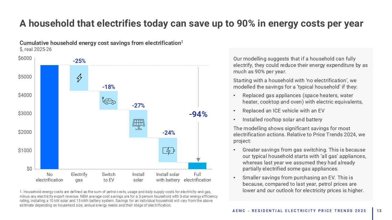 Rather than focusing only on electricity bills, we look at the total energy spend for households. That includes electricity, gas where it’s still used, transport fuels like petrol, and increasingly the role of electrification — electric vehicles, electric appliances, rooftop solar, batteries, and demand‑side technologies.