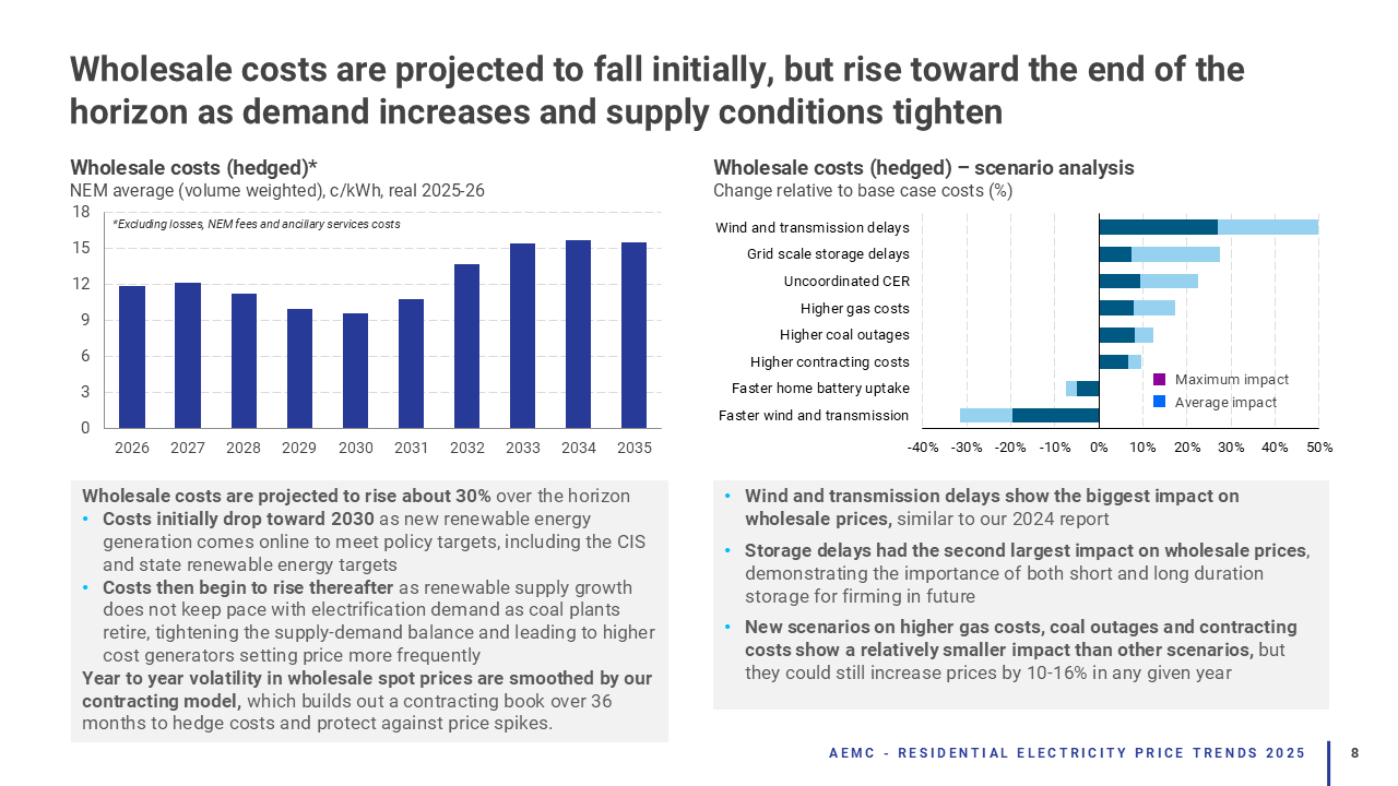 Even if households don’t see wholesale price spikes directly, those risks flow through hedging costs, retail pricing strategies and ultimately household bills.